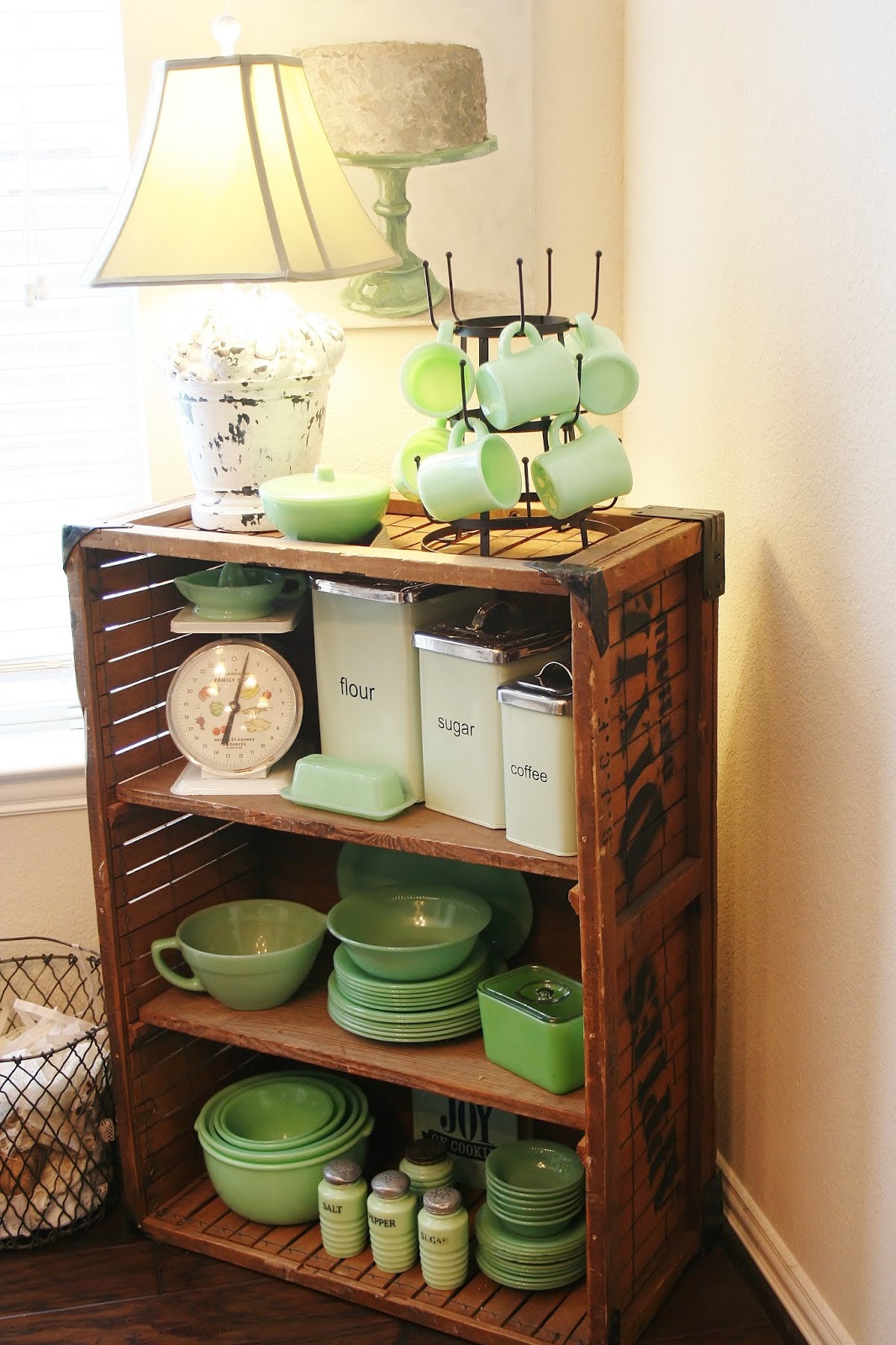 I just can’t get enough! This is my old apple crate in the other corner. And I’m constantly shakin’ things up in here. Every time I post pictures of my dining room things are different. It’s my vintage playground. Thanks for coming to play!