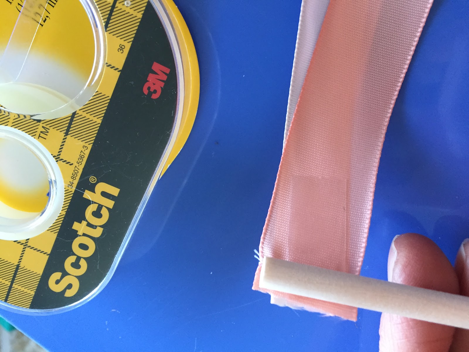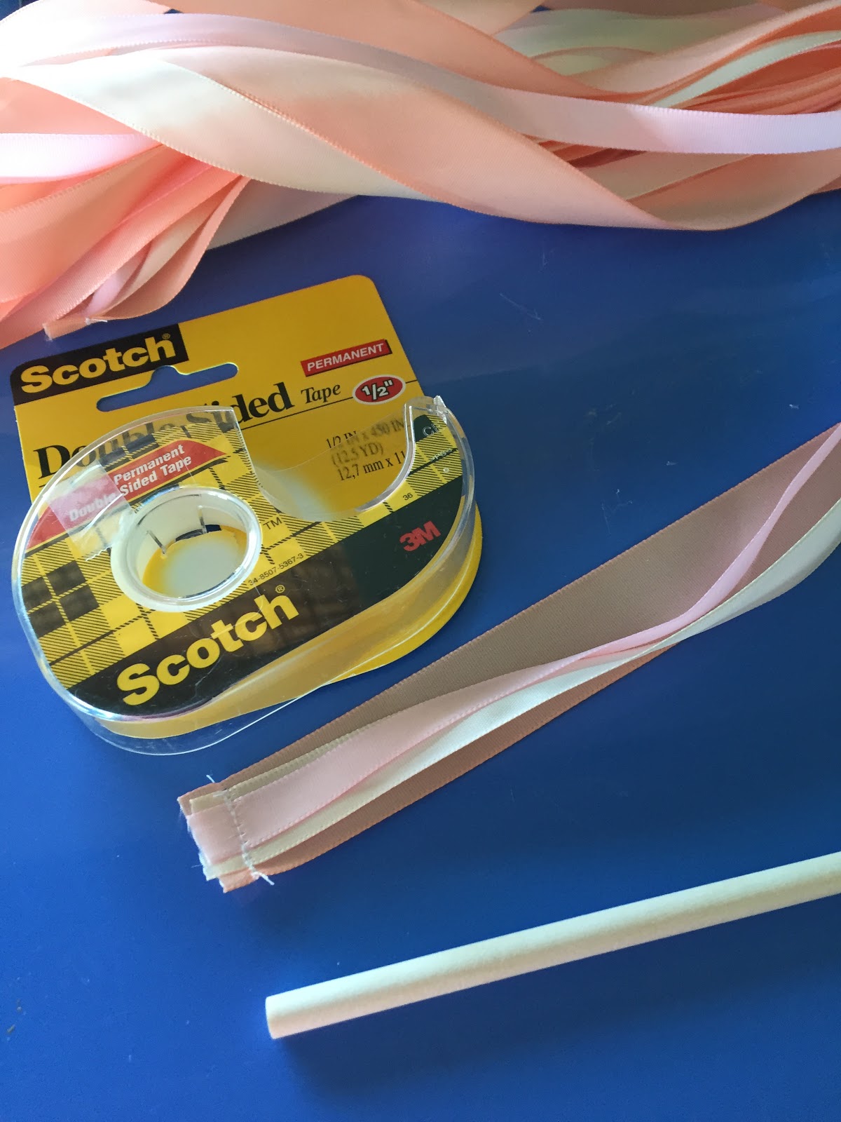 I attached each ribbon to a 12″ dowel using double stick tape and it worked perfectly!!