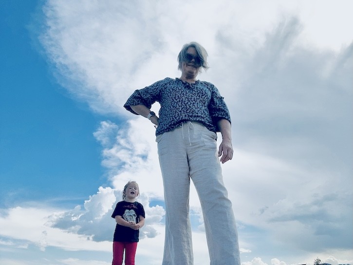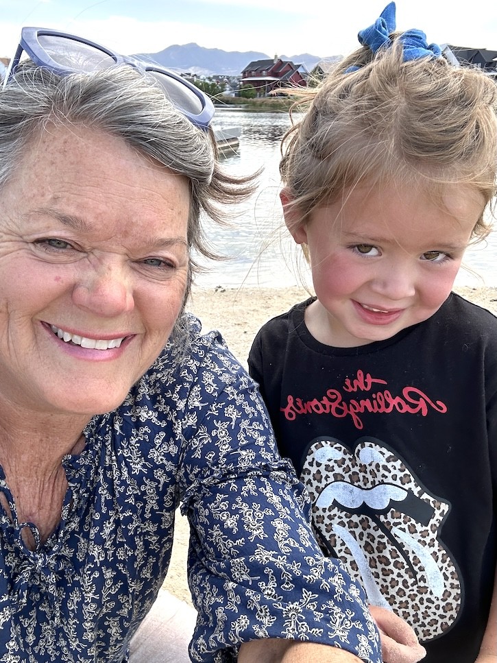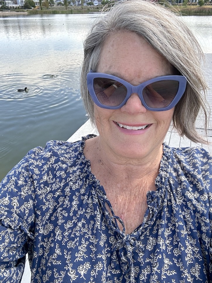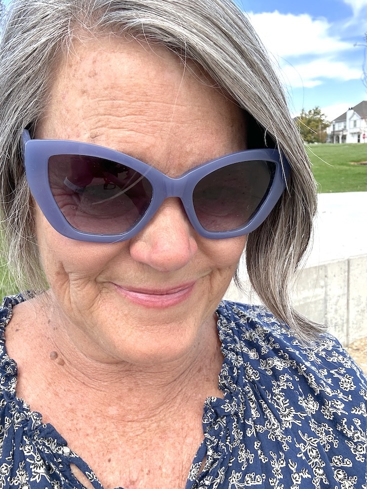 Of course, no outfit is complete without accessories. My blue sunglasses from Italy were the perfect choice for a sunny and windy day by the lake—they add a fun pop of color and a little bit of European flair. On my feet, I wore my comfy white flip-flops, ideal for walking lakeside and chasing after my granddaughter.