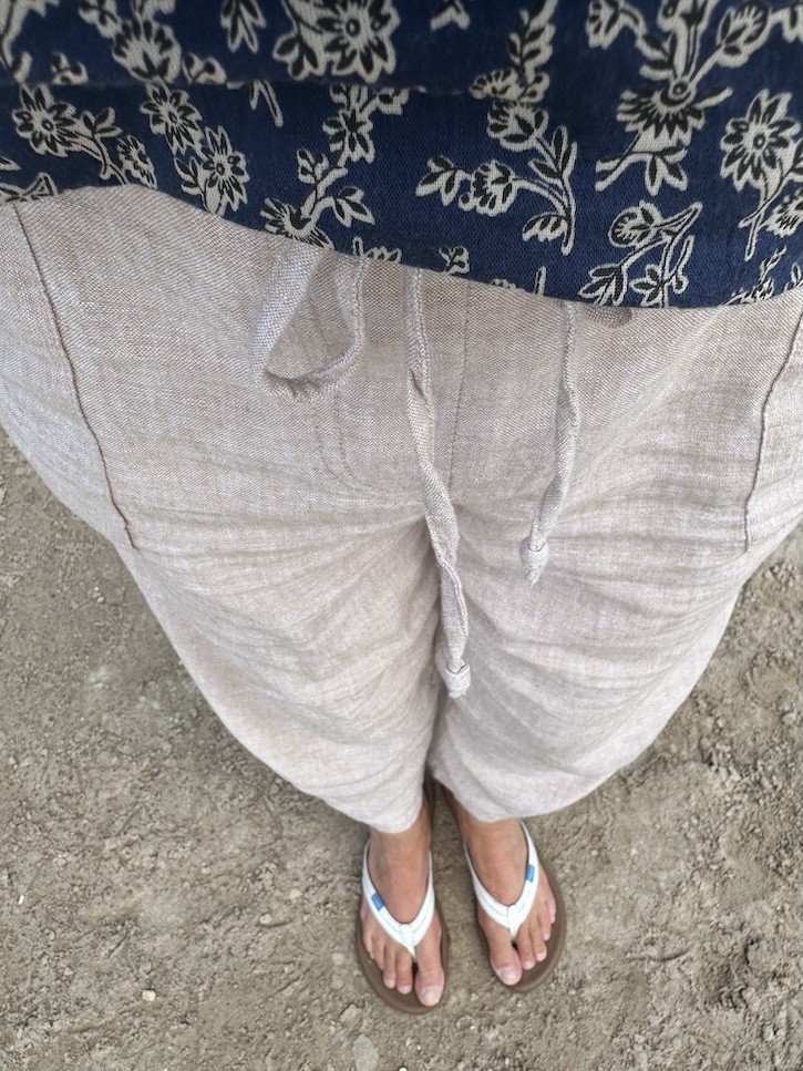 It’s still quite warm here in Utah, so when I took my granddaughter to the lake the other day, I pulled together an effortless outfit of the day : Linen pants & Navy top that kept me cool and comfortable while still looking chic.