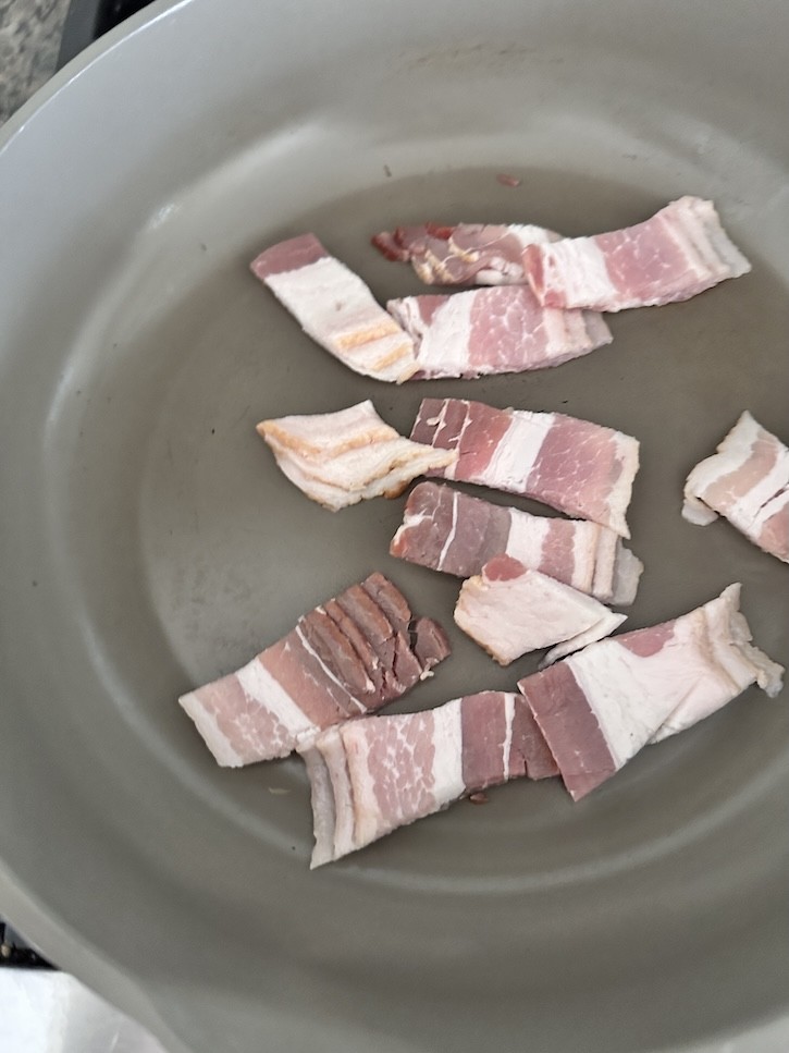 This version has a delicious twist: crisp bacon, sautéed green pepper and green onion, and a sprinkle of fresh basil. It adds the perfect pop of color and freshness.