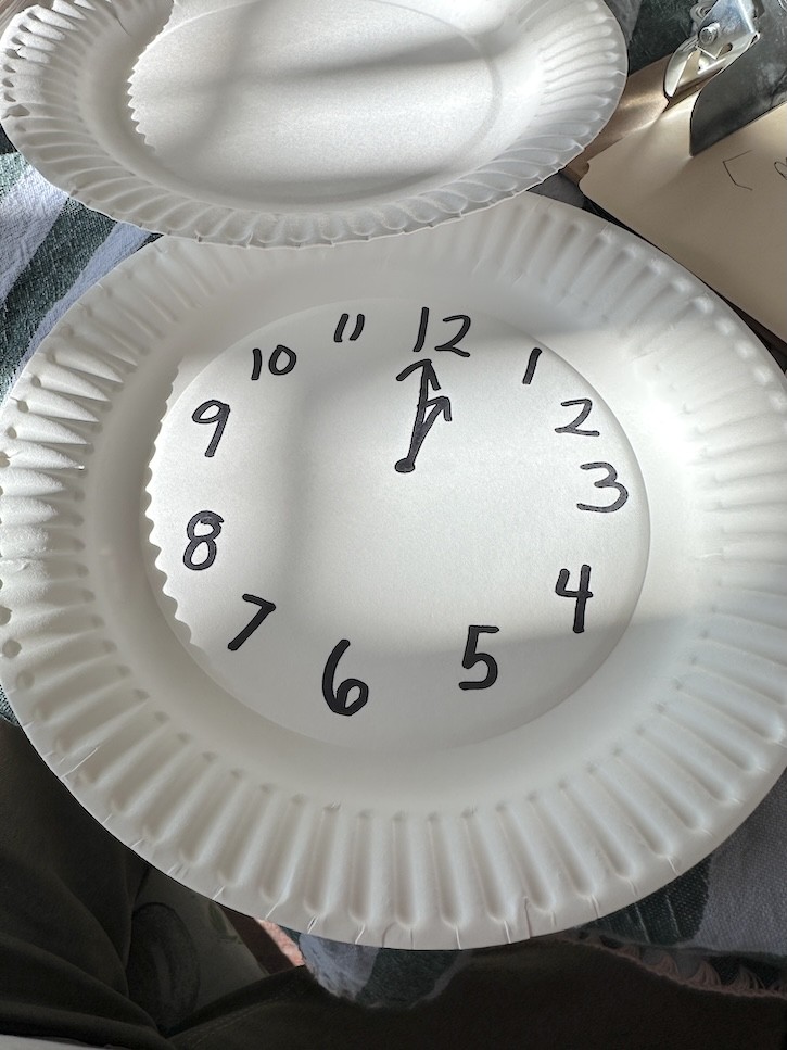 - Add simple clock hands with black marker