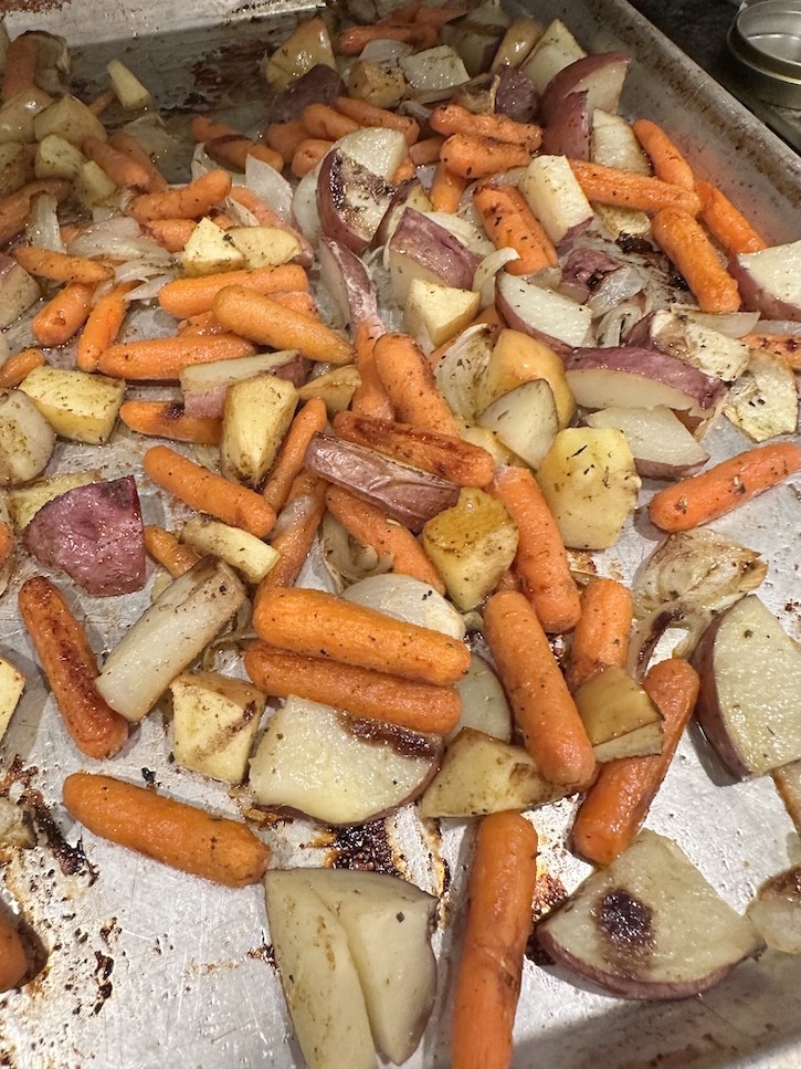 - It’s a true one-pan meal — protein, vegetables, and fruit all roast together