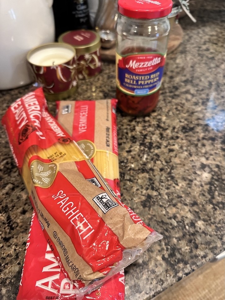 - 1 (16-ounce) package angel hair pasta or spaghetti