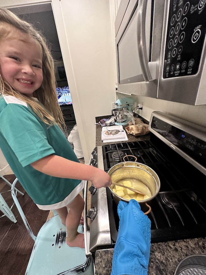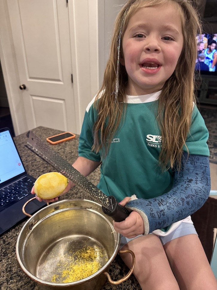 Of course I had to enlist the help of my youngest granddaughter. Georgia loves to help in the kitchen even with her broken arm! This kid has broken her arm twice in one year.