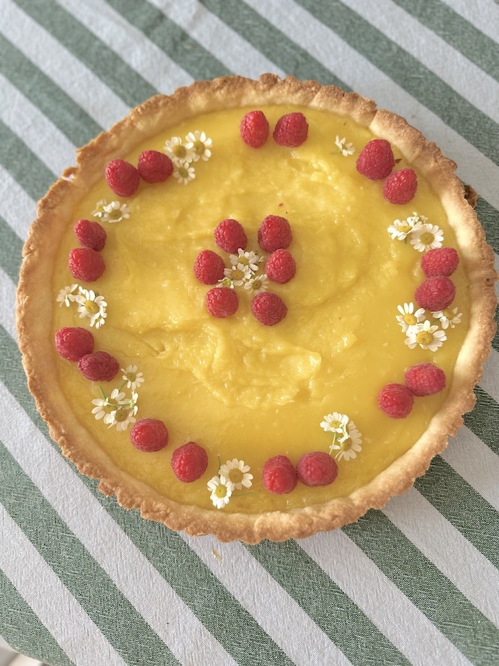 It’s actually based on a classic French-style lemon tart, which is known for its simple pastry shell filled with a rich lemon filling.