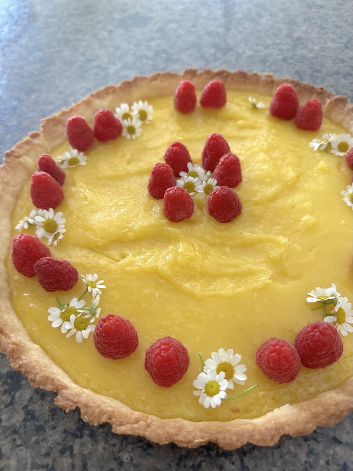 - Pour the curd into your tart shell and smooth the surface then bake for 10 minutes or until the edge is just set. Refrigerate for 2 hours then cut and serve.