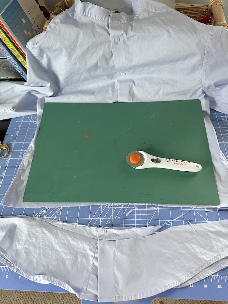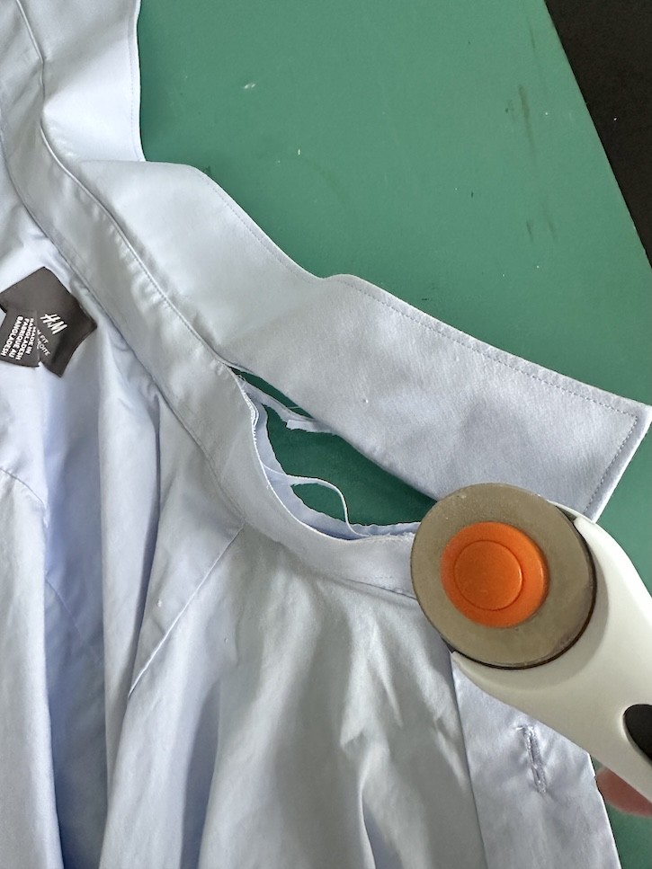 Start by cutting the collar off along the seam line so the collar area opens up.