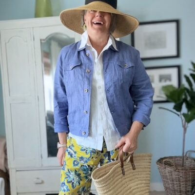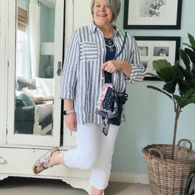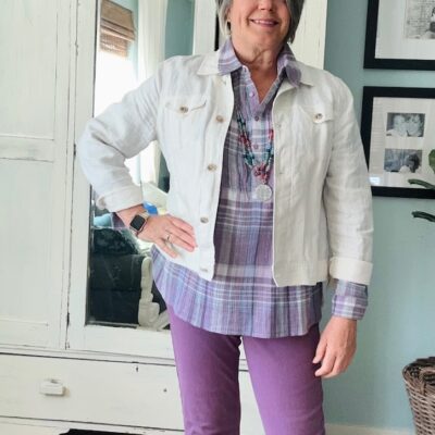 A Casual Spring Outfit with a Gauzy Purple Plaid Tunic